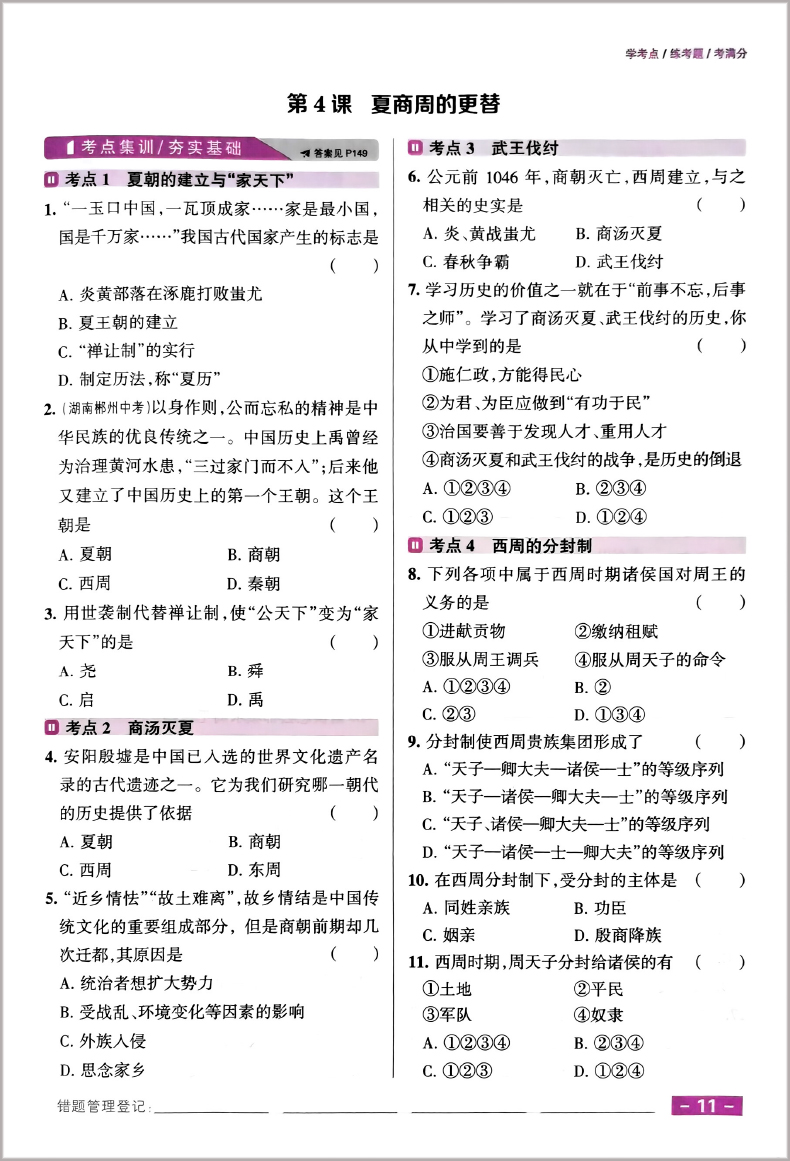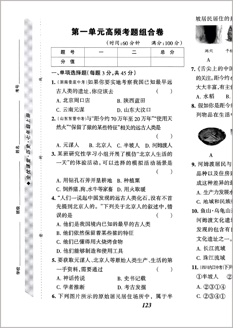 全优课堂 历史七年级上册 新全优