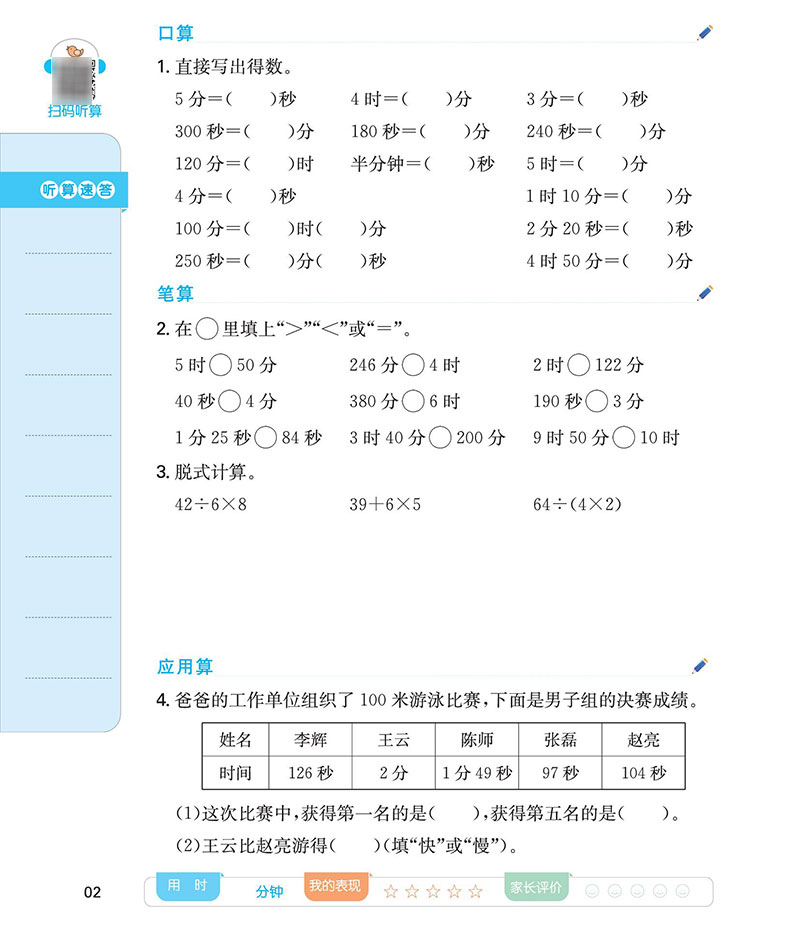 首页> 小学教辅> 三年级> 数学> 一本 小学数学计算能力训练100分 三年级上册RJ版