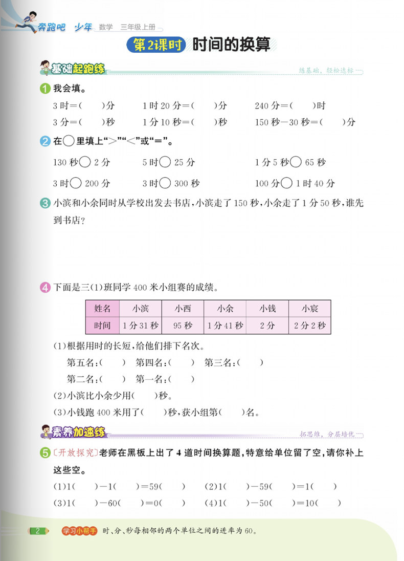 2024版 奔跑吧少年 课时天天练 三年级上册数学 人教版