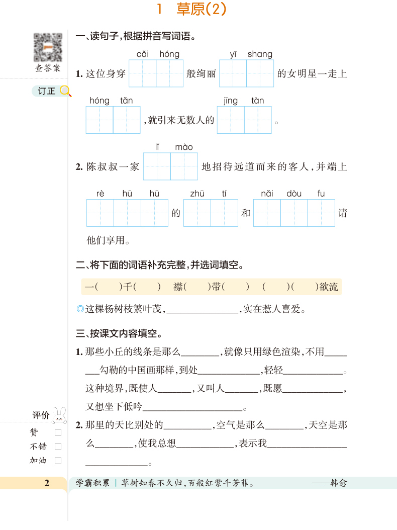 2023秋 小学学霸默写语文六年级上册 人教版 绿卡图书