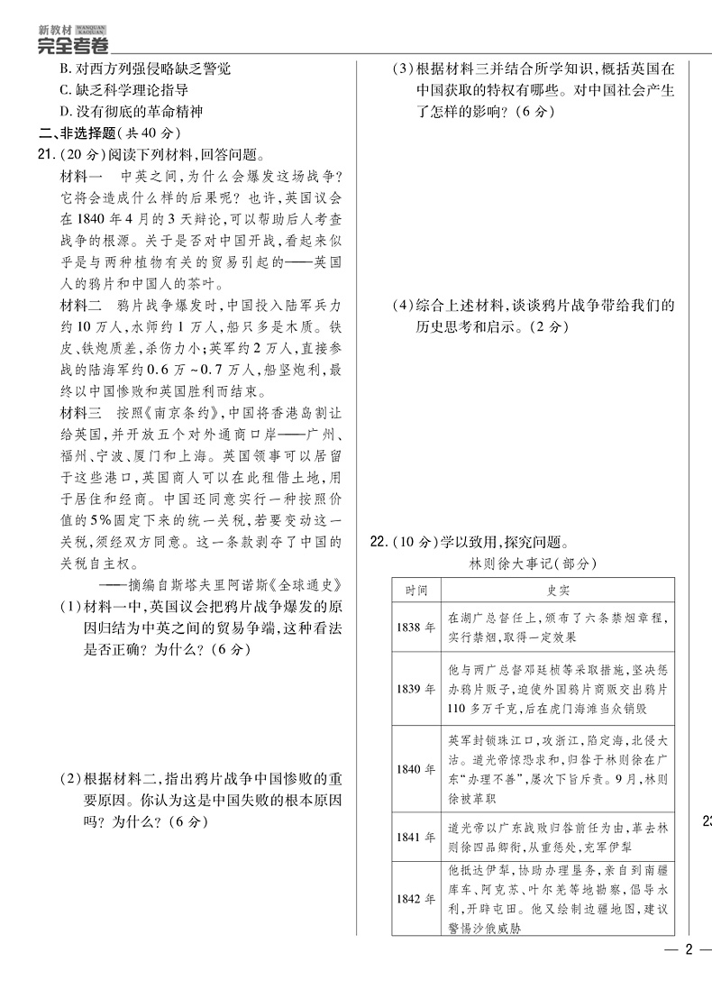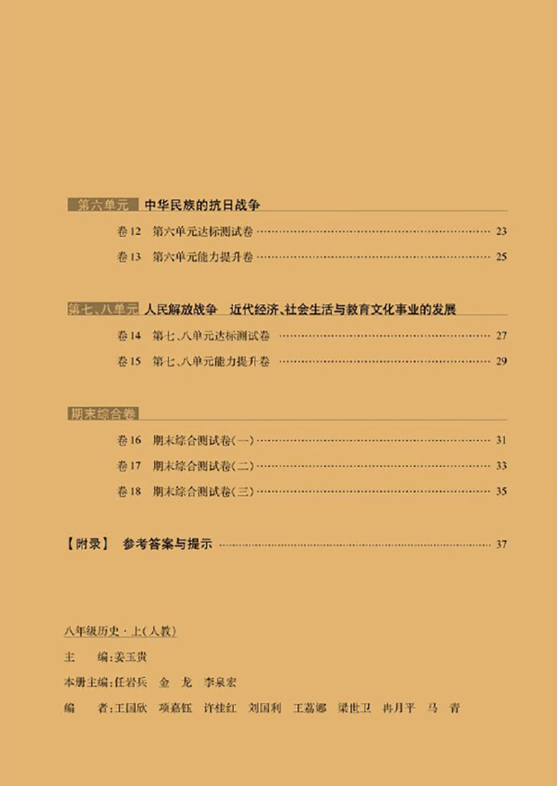 完全考卷 八年级上册历史 新教材 人教版