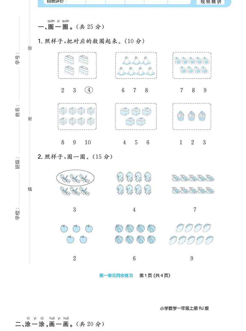 一本 同步培优新卷 小学数学一年级上册 RJ版