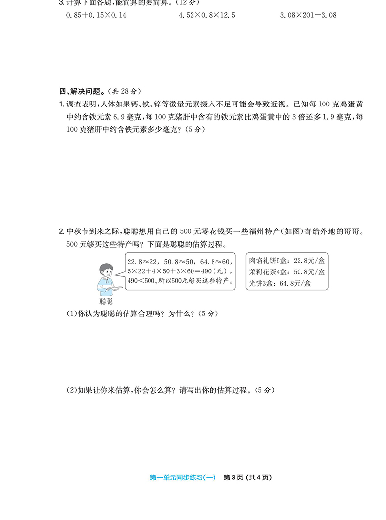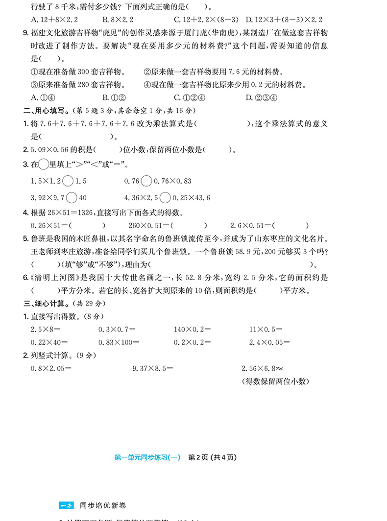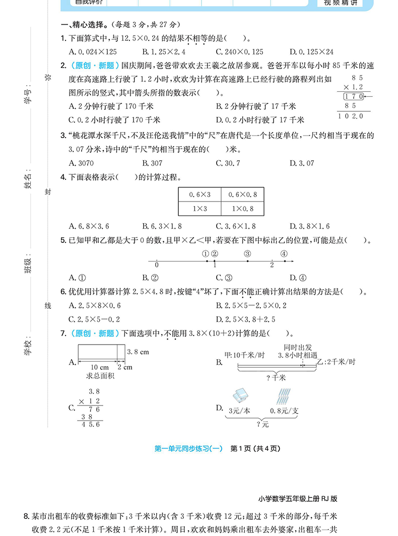 一本 同步培优新卷 小学数学五年级上册 RJ版