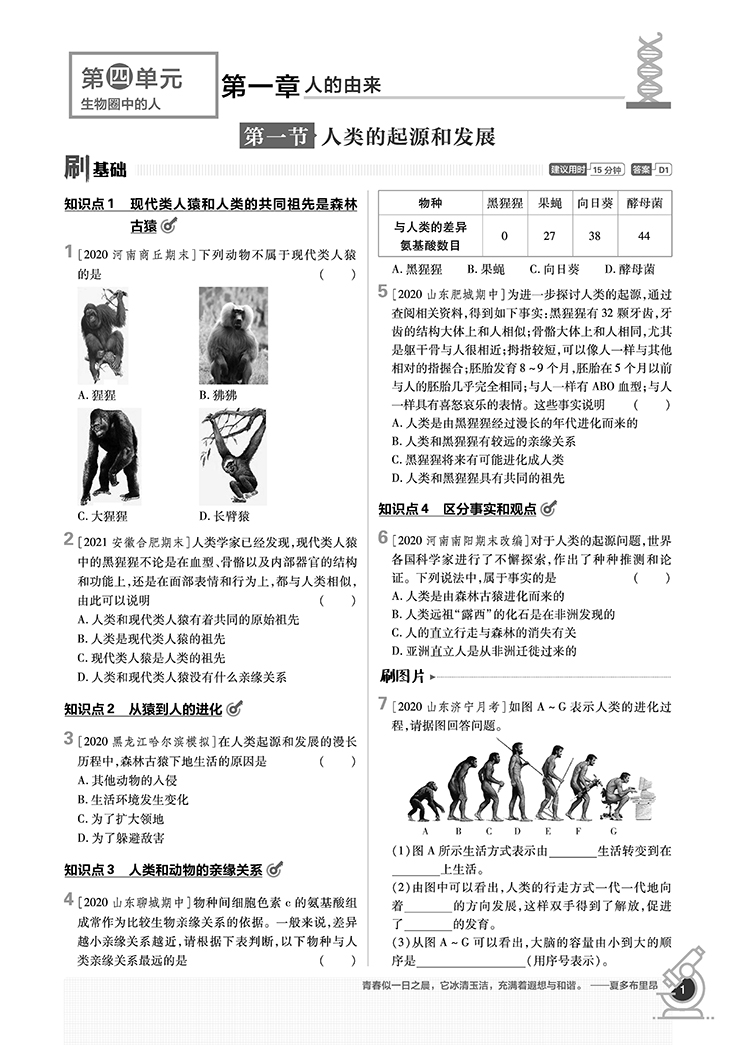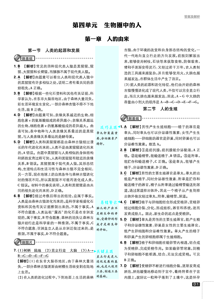 必刷题七年级生物下册
