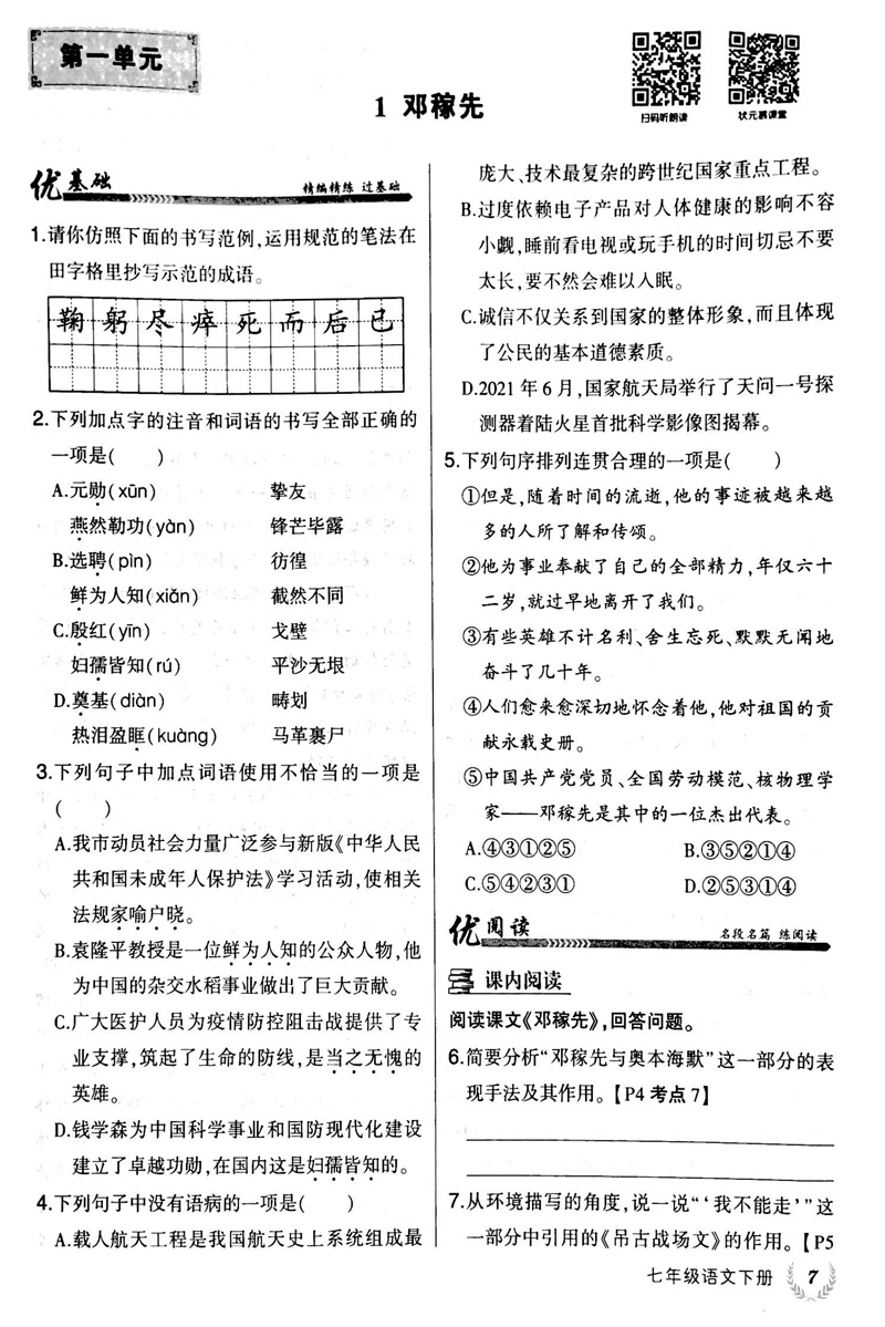 首页> 初中教辅> 七年级> 语文> 2022版 创优作业七年语文下册