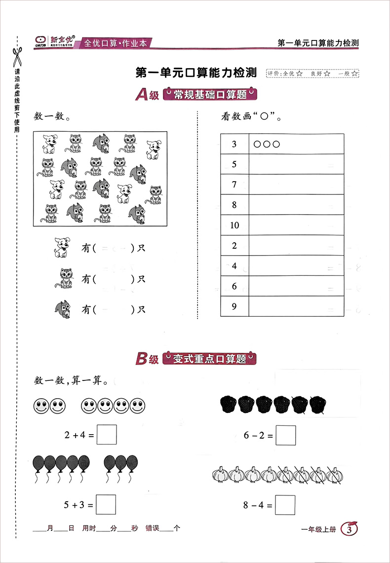 首页> 小学教辅> 一年级> 数学> 新全优 全优口算作业本 数学一年级上册