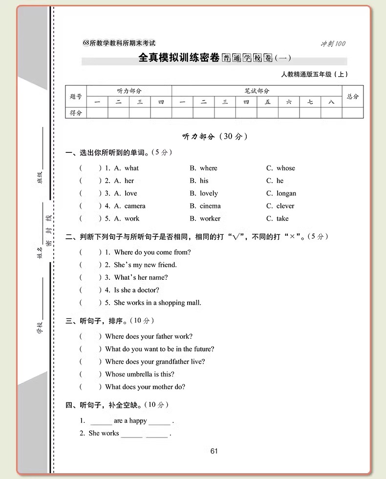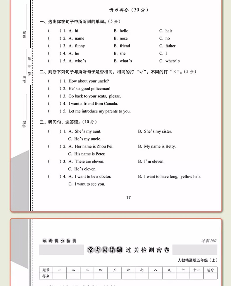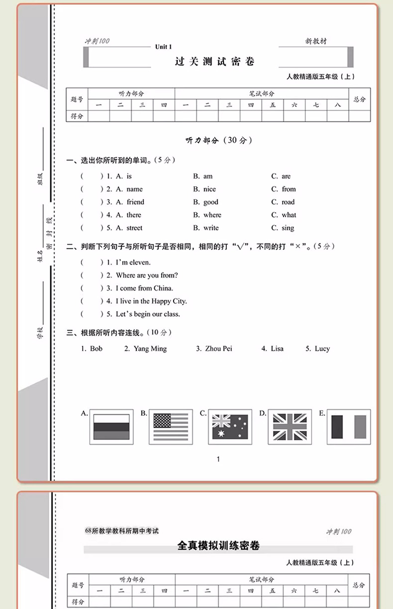 首页> 小学教辅> 五年级> 英语> 2023秋期末冲刺100分 英语五年级上册人教精通版