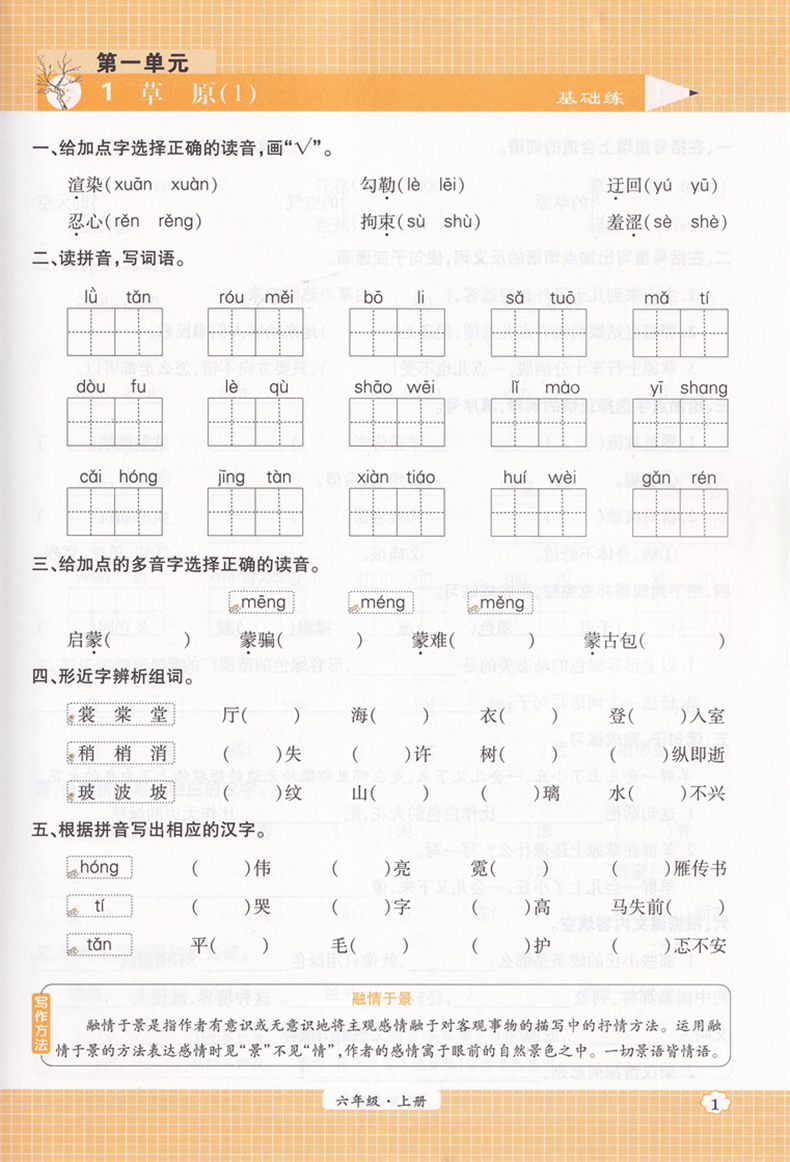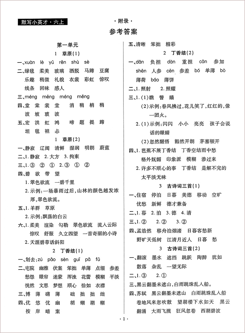 世纪英才默写小英才字词句专练 语文六年级上册