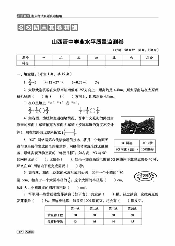 首页> 小学教辅> 六年级> 数学> 小学名校期末考试真题真卷精编数学6年级上册(人教版)