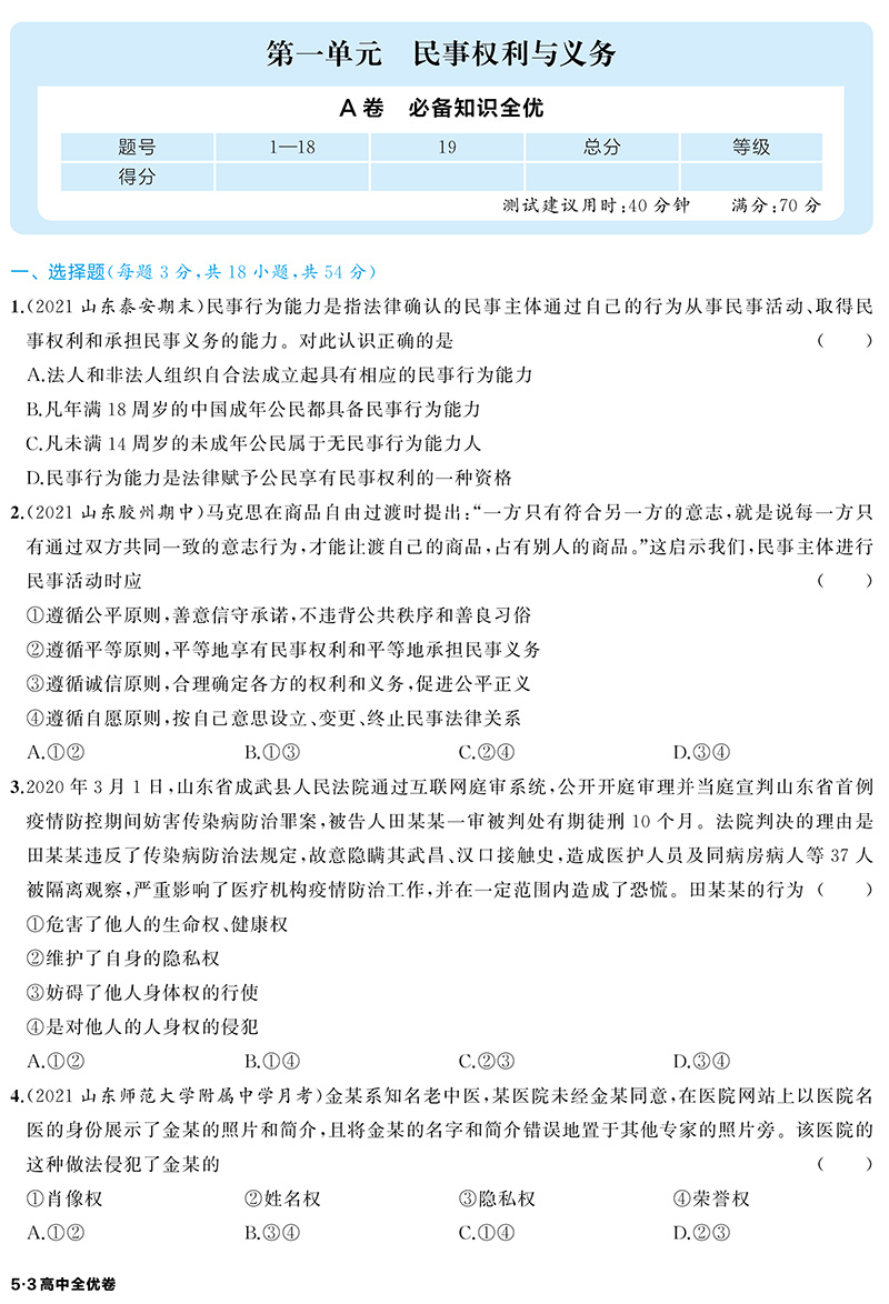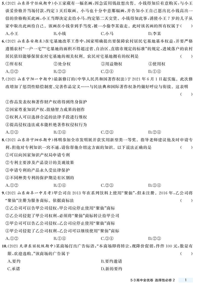 首页> 高中教辅> 高二年级> 政治> 5.3全优卷 高中政治选修二、三 适用高二下