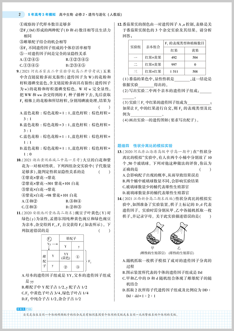 2022版 5年高考3年模拟高中生物必修2 遗传与进化