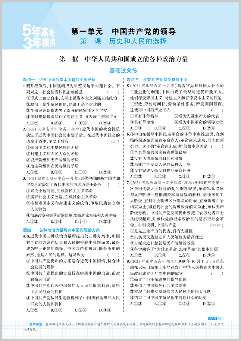 首页> 高中教辅> 高一年级> 政治> 2022版 5年高考3年模拟高中政治必修3 政治与法治