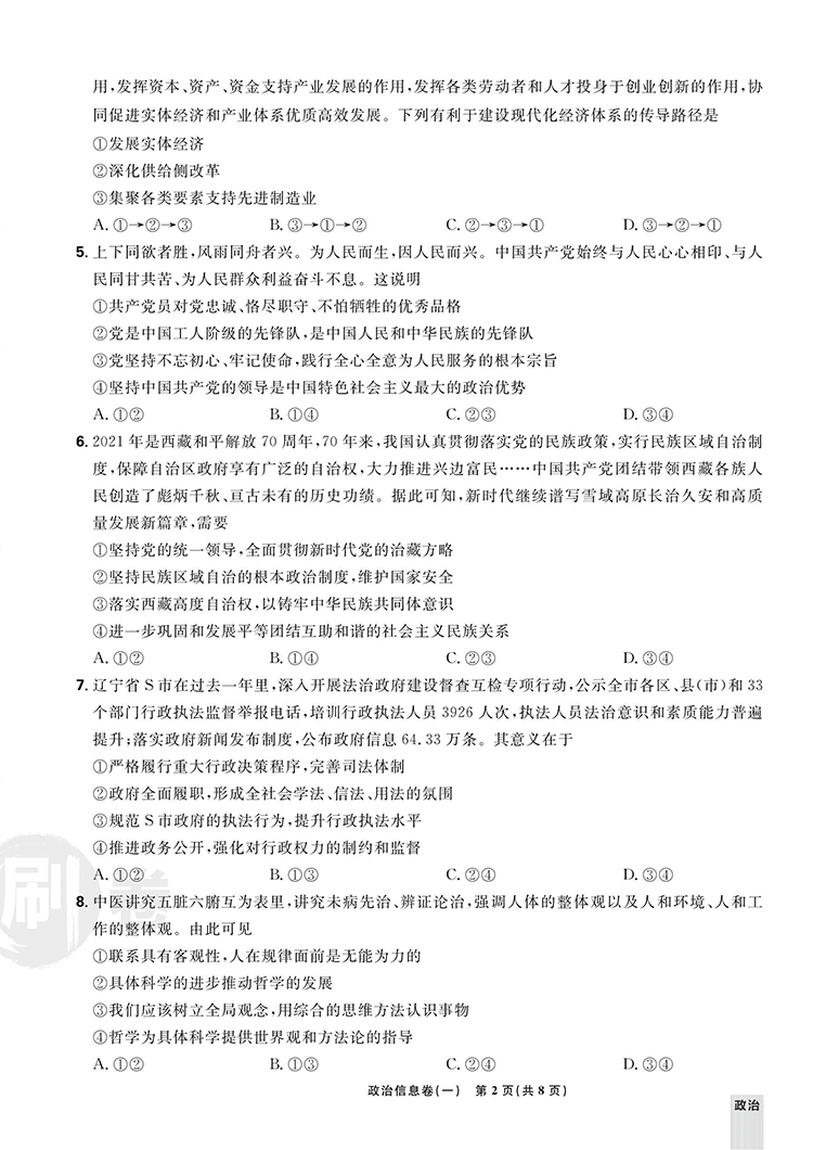 首页> 高中教辅> 高三年级> 政治> 2022版 高考必刷卷 信息卷政治