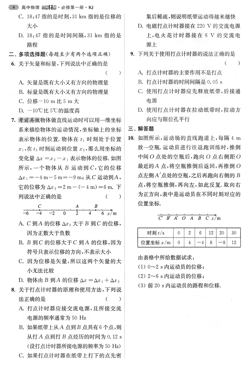 高中物理小题狂做必修第一册RJ基础过关