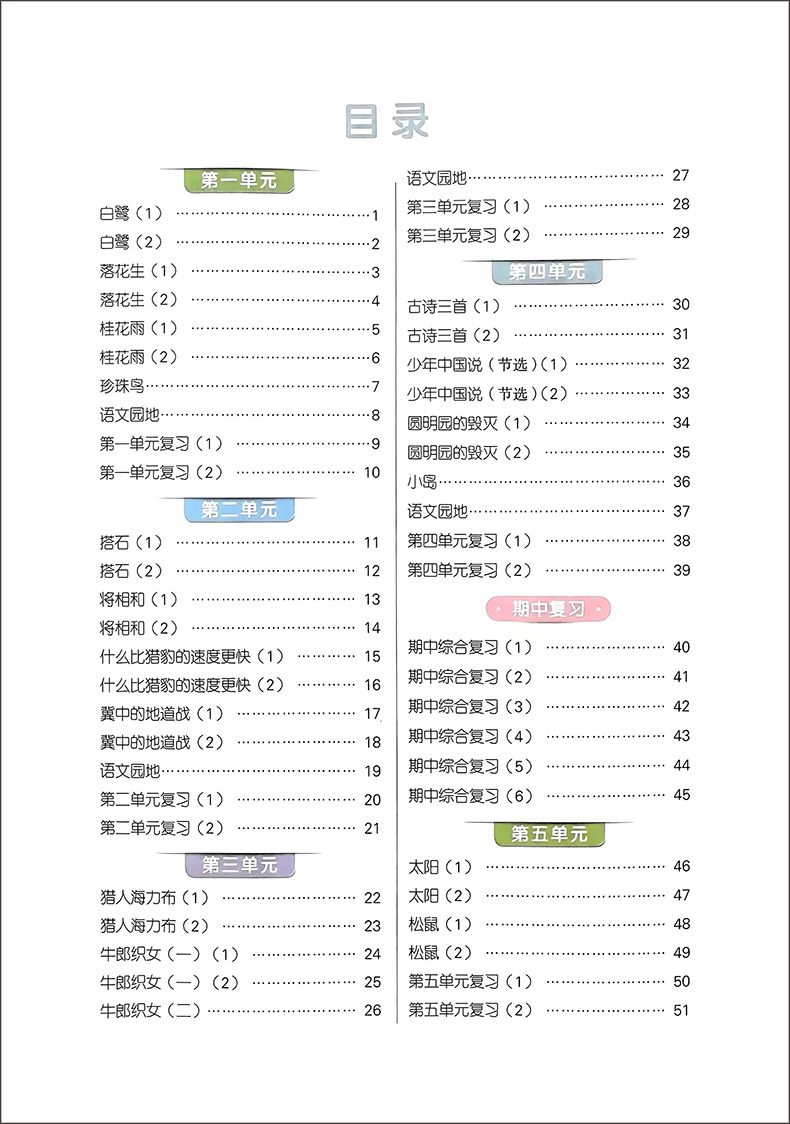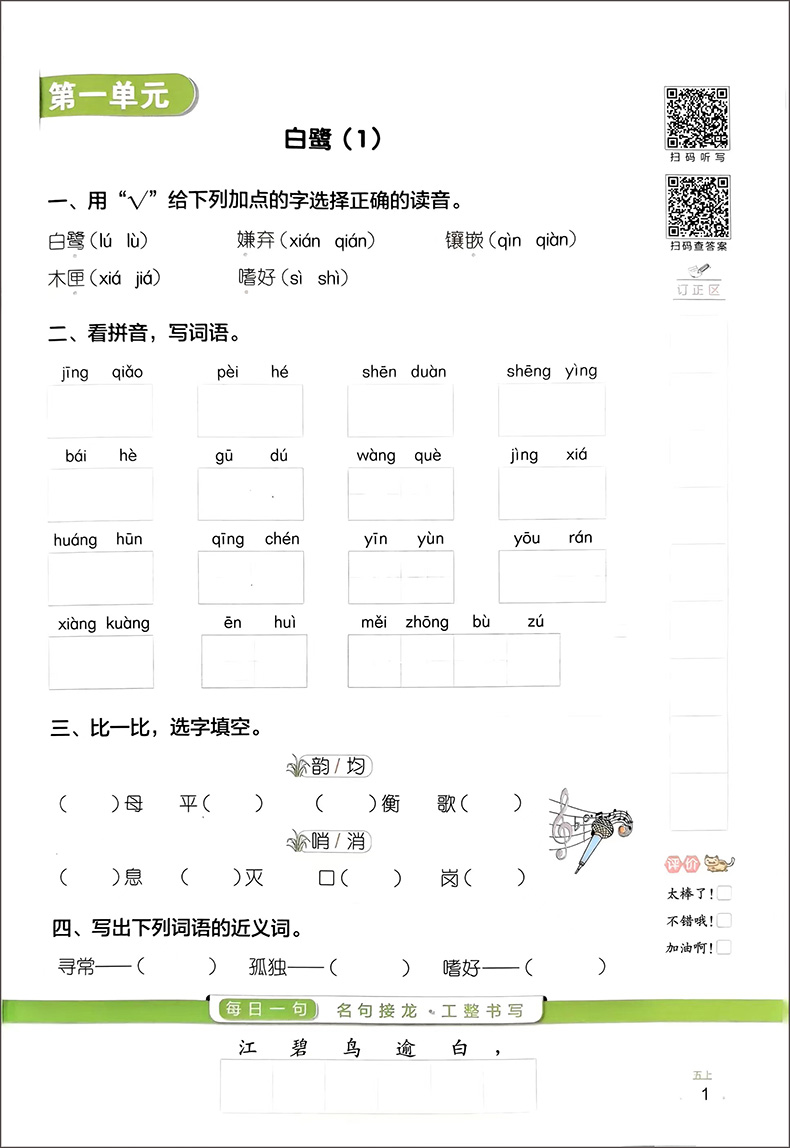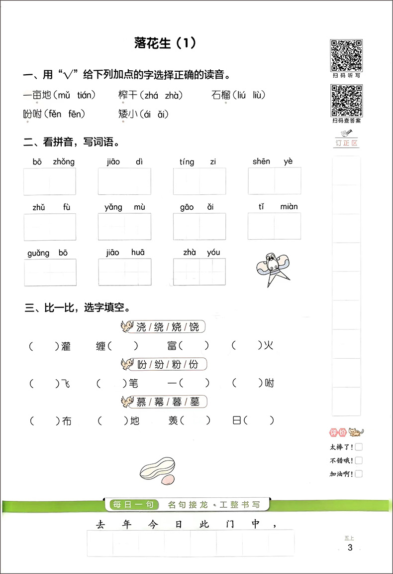 24阳光同学默写小达人五年上