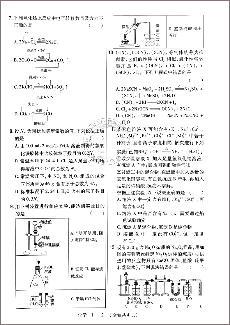 首页> 高中教辅> 高一年级> 化学> 24零失误期中期末优选卷高一化学上