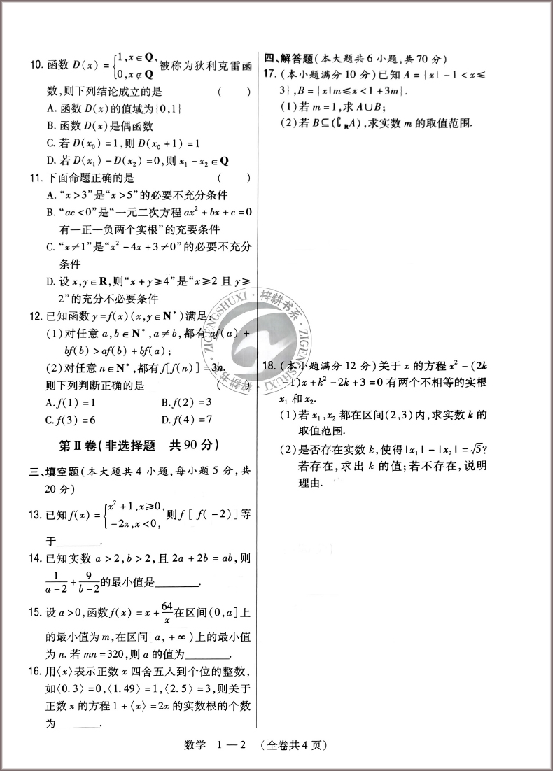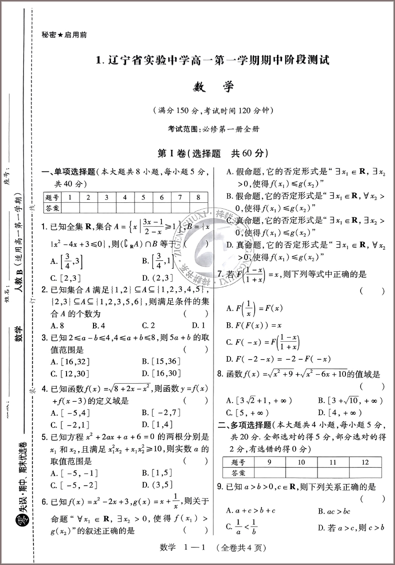首页> 高中教辅> 高一年级> 数学> 24零失误期中期末优选卷高一数学上