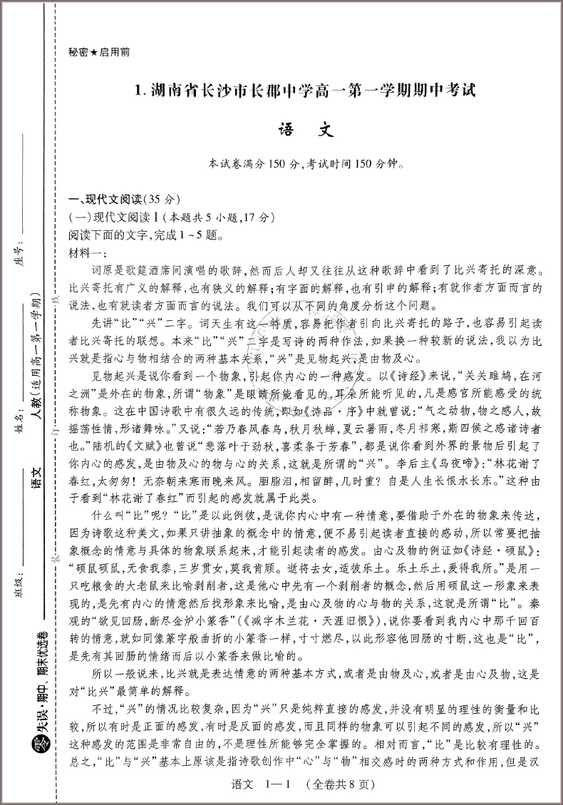 首页> 高中教辅> 高一年级> 语文> 24零失误期中期末优选卷高一语文上