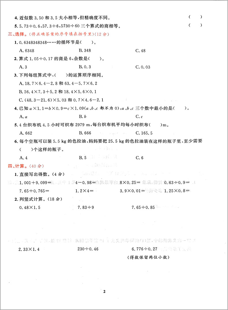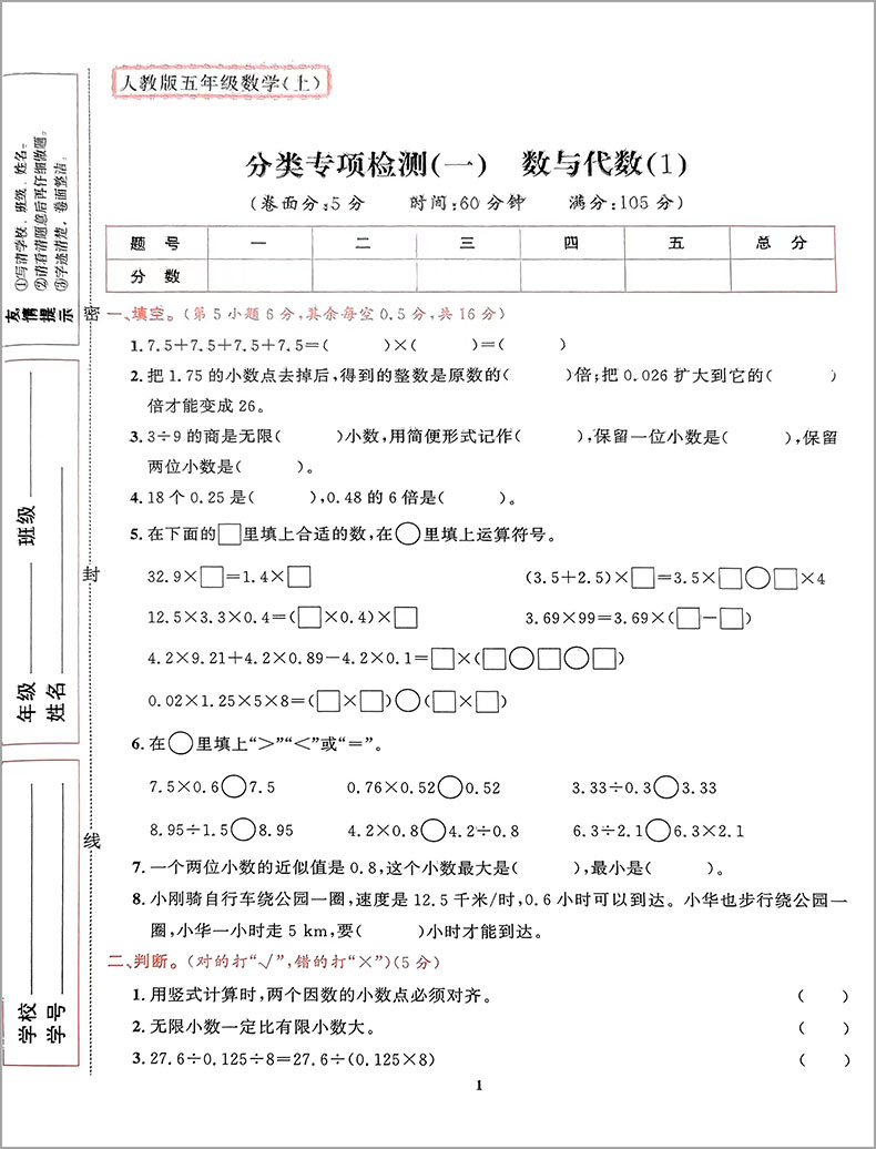 首页> 小学教辅> 五年级> 数学> 24期末大冲刺五年数学上
