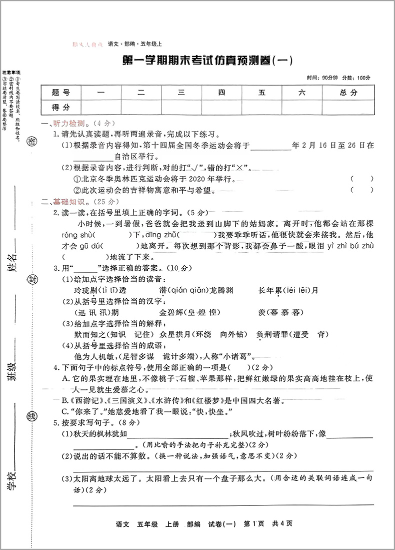 首页> 小学教辅> 五年级> 语文> 24期末大盘点五年语文上