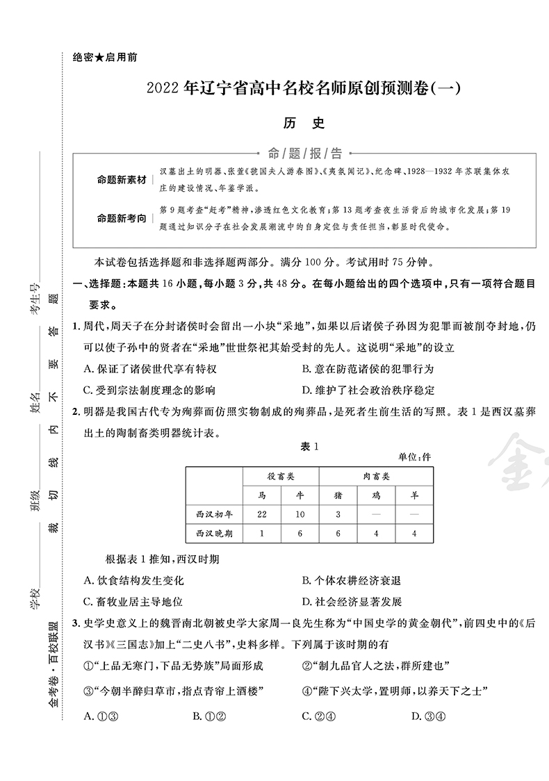首页> 高中教辅> 高三年级> 历史> 金考卷 名师原创预测卷 历史