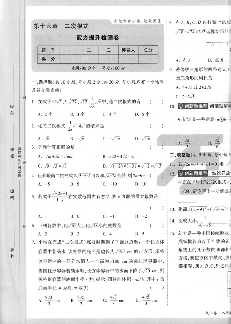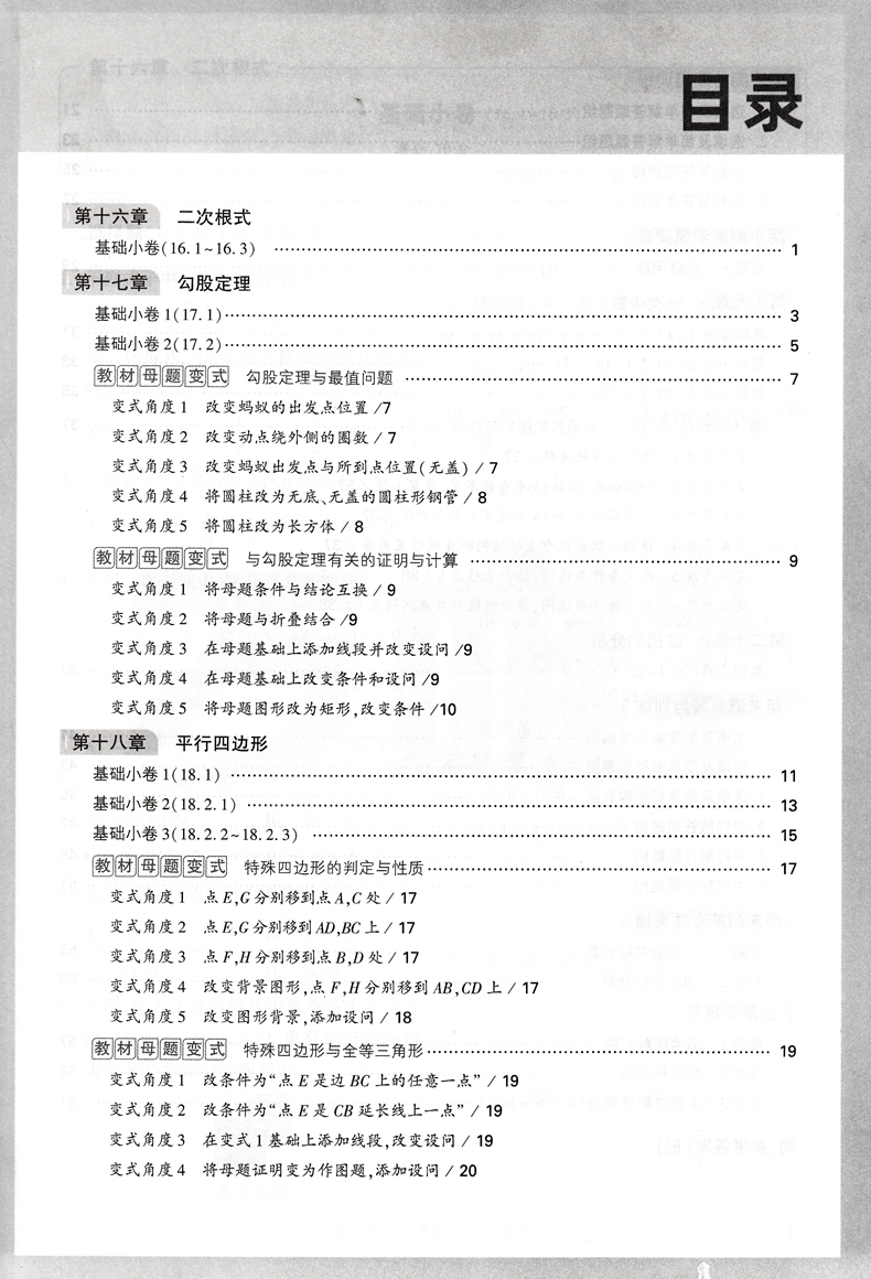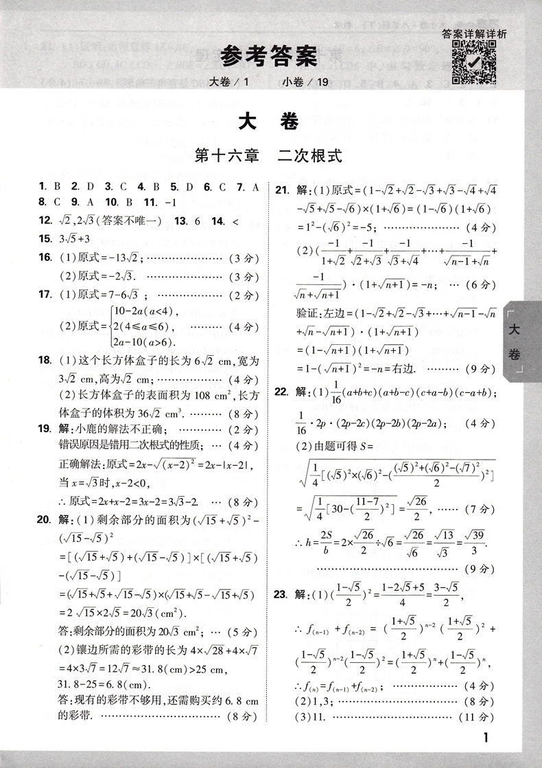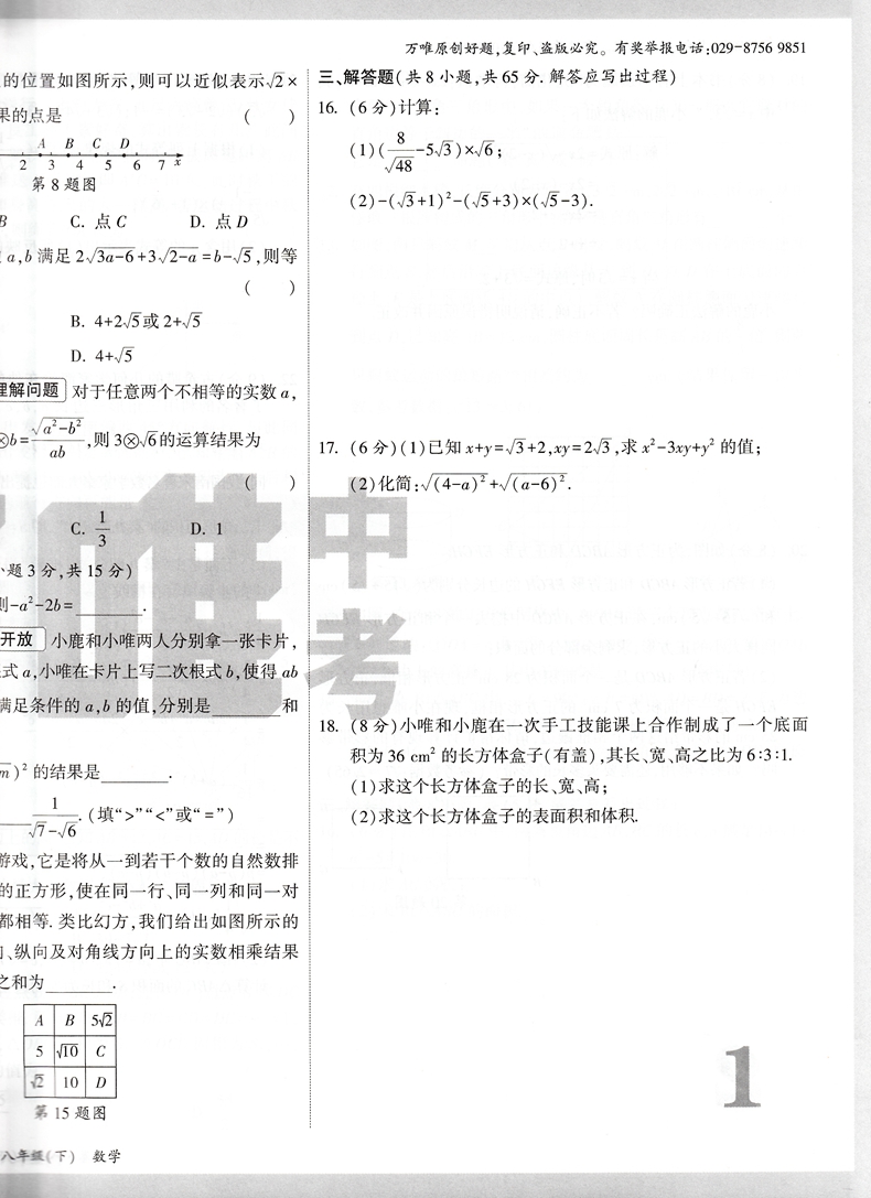 2022版 万唯大小卷八年级数学下