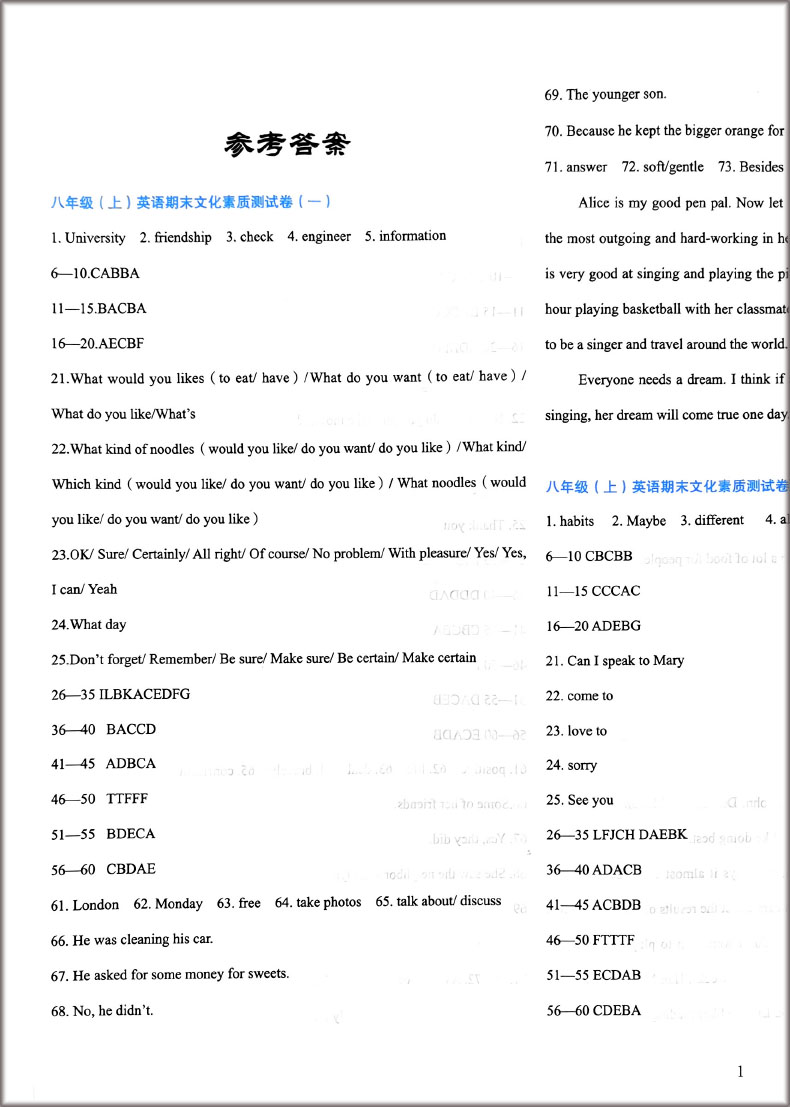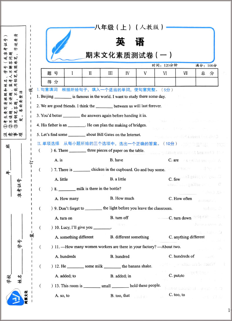 首页> 初中教辅> 八年级> 英语> 24完美期末一遍过八年英语上