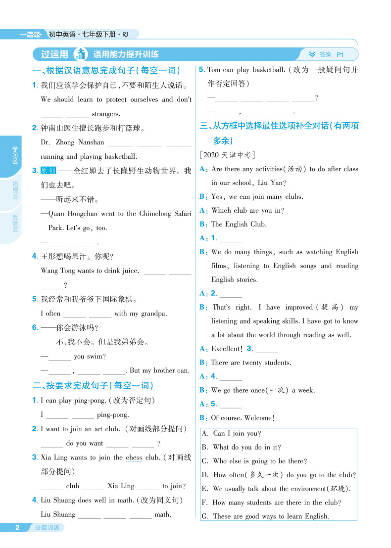 首页> 初中教辅> 七年级> 英语> 2022版 一遍过七年级英语下册