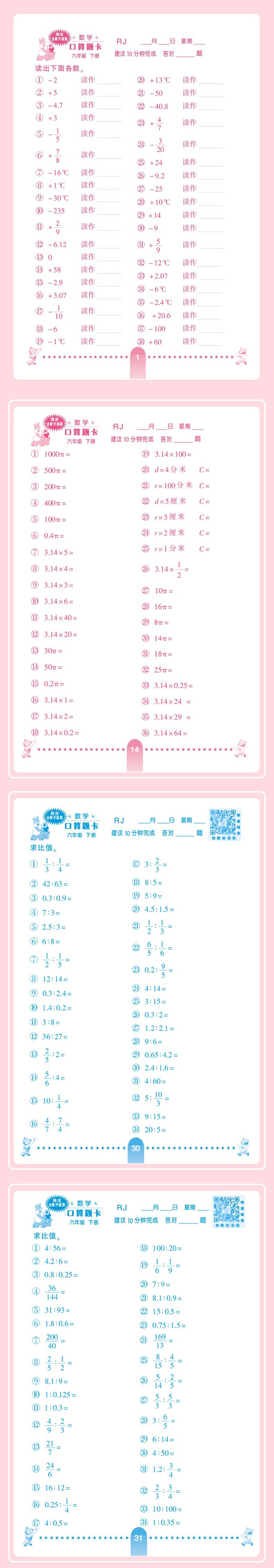 首页> 小学教辅> 六年级> 数学> 2022版 海淀数学口算题卡六年级下册