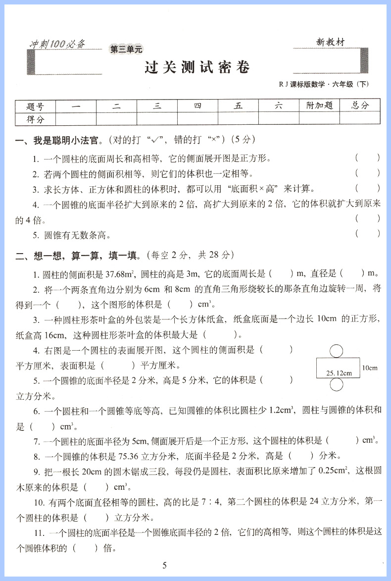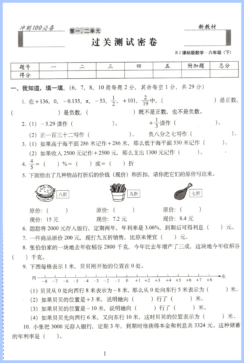 首页> 小学教辅> 六年级> 数学> 2022春 期末冲刺100分六年级数学下