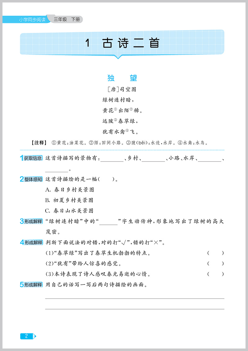 首页> 小学教辅> 三年级> 语文> 2022春季5.3天天练同步阅读三年级下