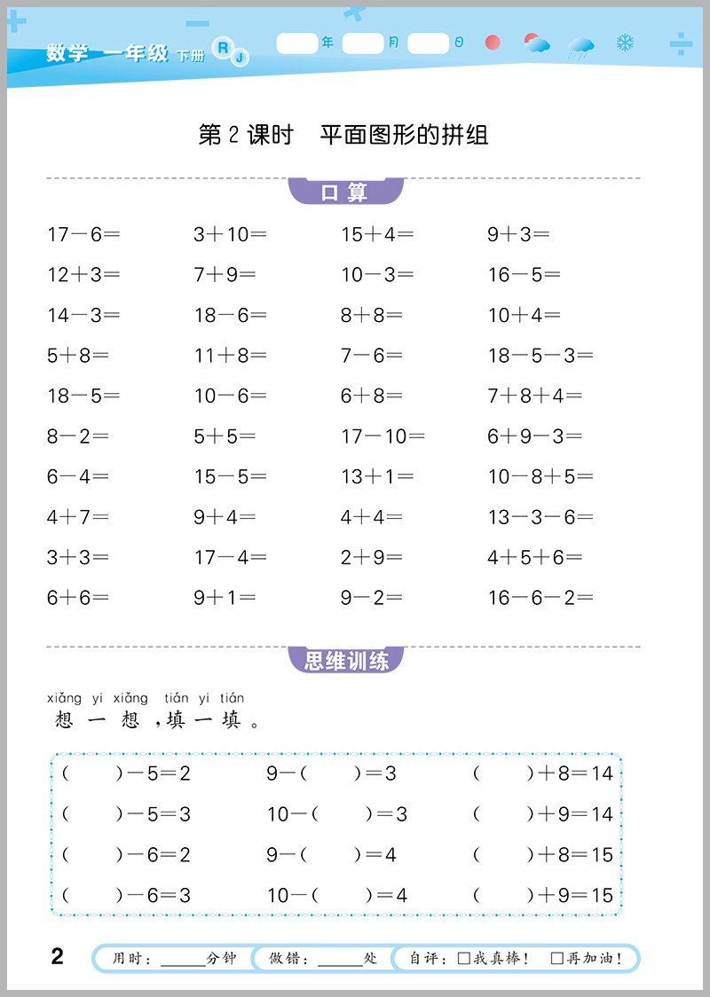 首页> 小学教辅> 一年级> 数学> 2022春 口算大通关一年级数学下册