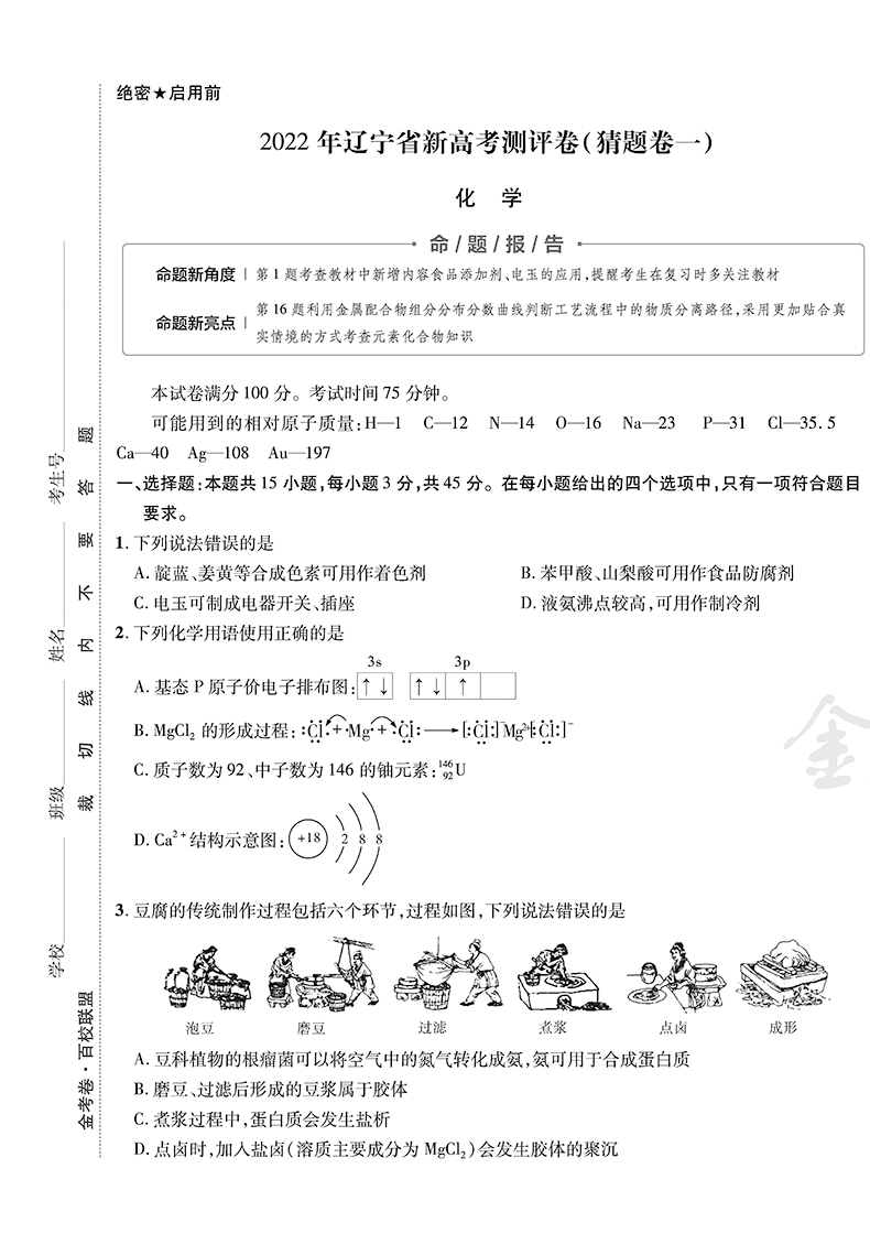 首页> 高中教辅> 高三年级> 化学> 2022金考卷新高考测评卷猜题卷化学
