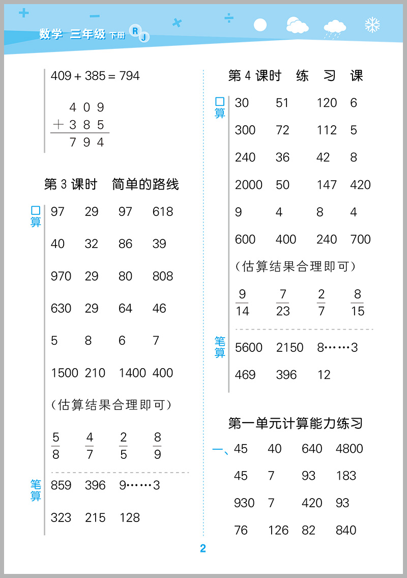 首页> 小学教辅> 三年级> 数学> 2022春 口算大通关三年级数学下册