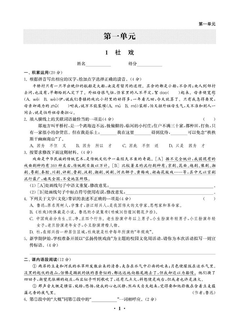首页> 初中教辅> 八年级> 语文> 2022活页检测八年级语文下