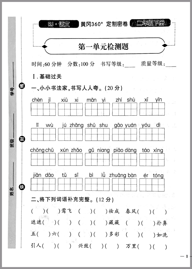 首页> 小学教辅> 二年级> 语文> 2022版 黄冈360定制密卷二年级语文下册