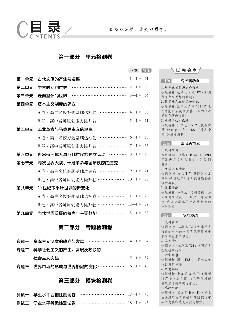金考卷活页题选名师名题单元双测卷高中历史必修中外历史纲要下人教版