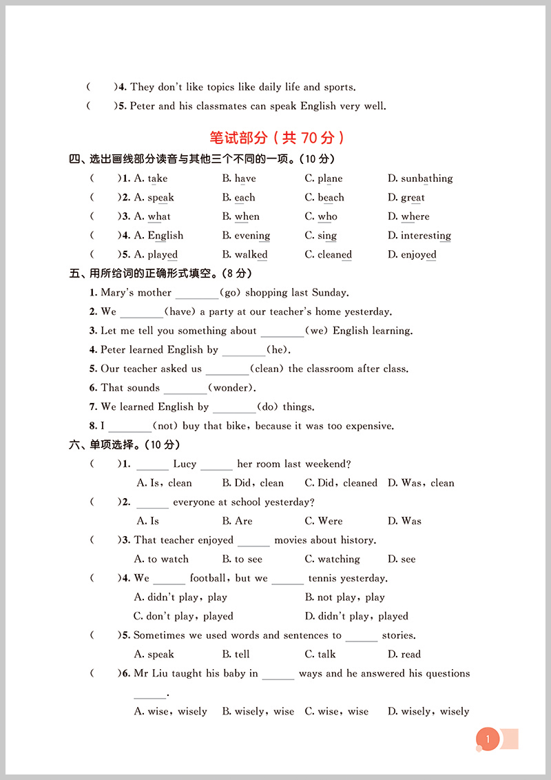 首页> 小学教辅> 六年级> 英语> 2022春 5.3天天练六年级英语下册
