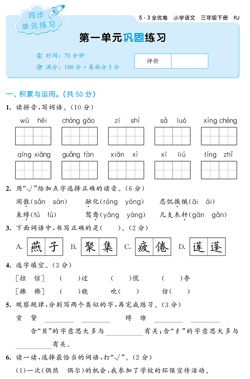 首页> 小学教辅> 三年级> 语文> 2022春 5.3全优卷三年语文下册