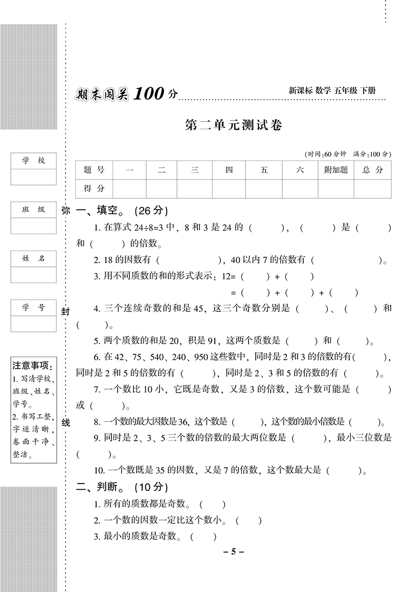 首页> 小学教辅> 五年级> 数学> 2022版 期末闯关100分五年级数学下册
