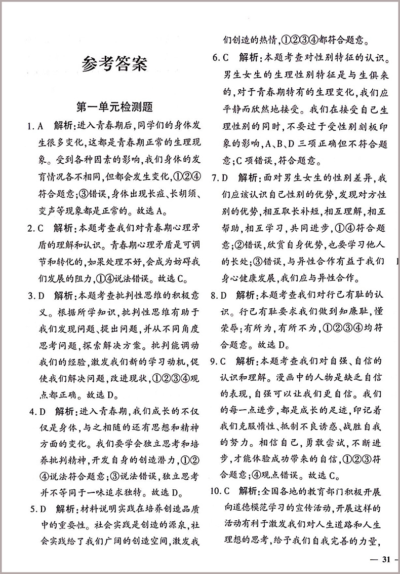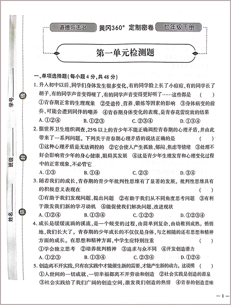 黄冈360密卷七年政治下