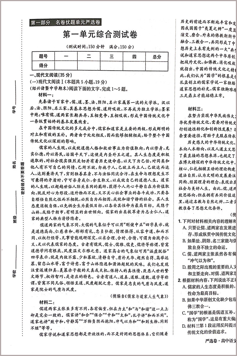 王后雄百强严选卷高中语文必修下