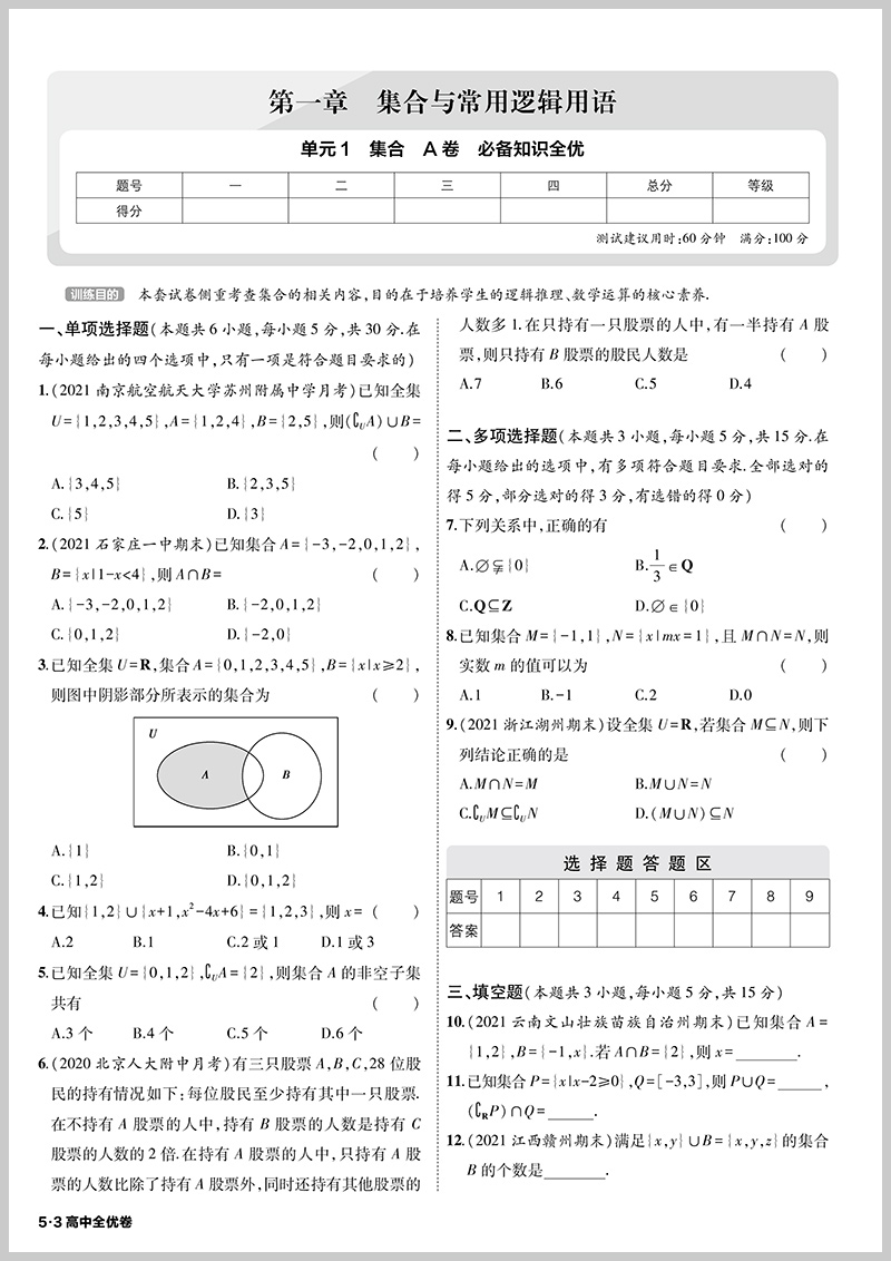 5.3全优卷高中数学必修一 适用高一上