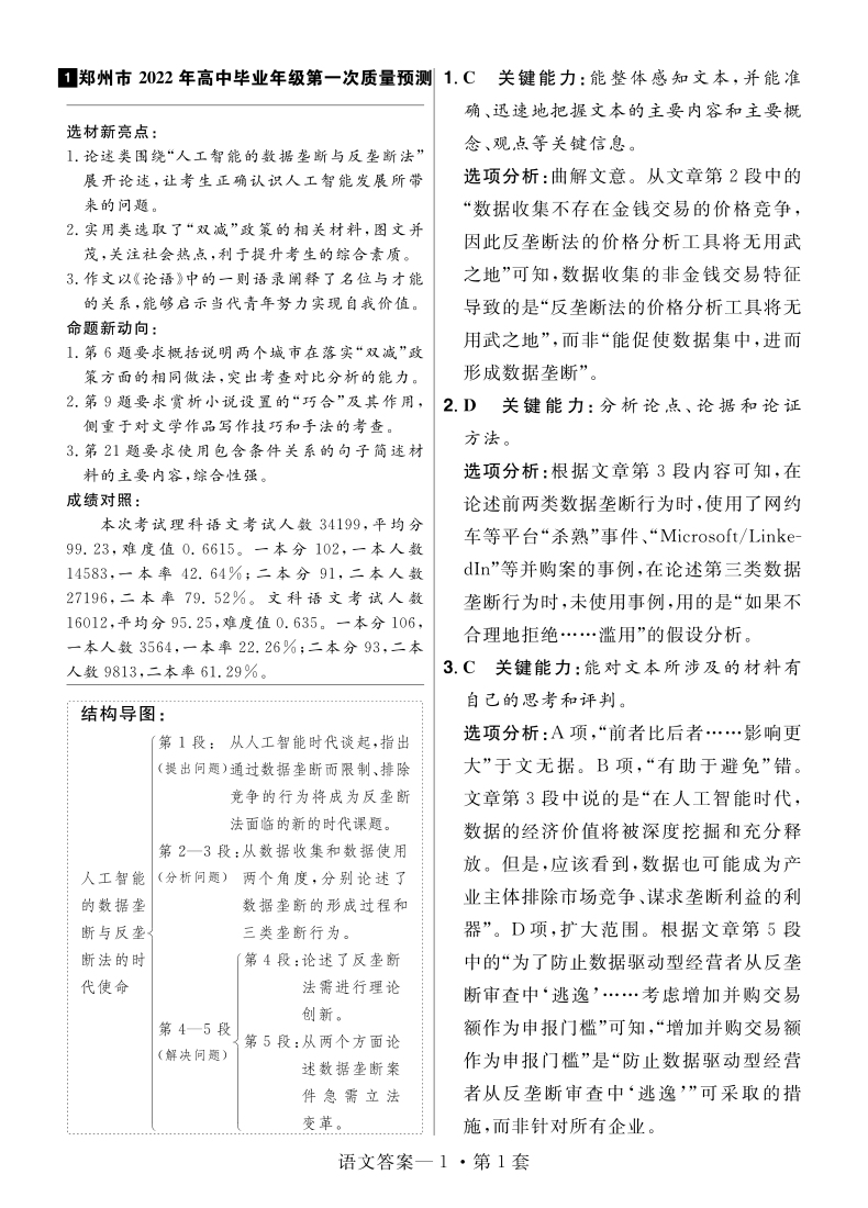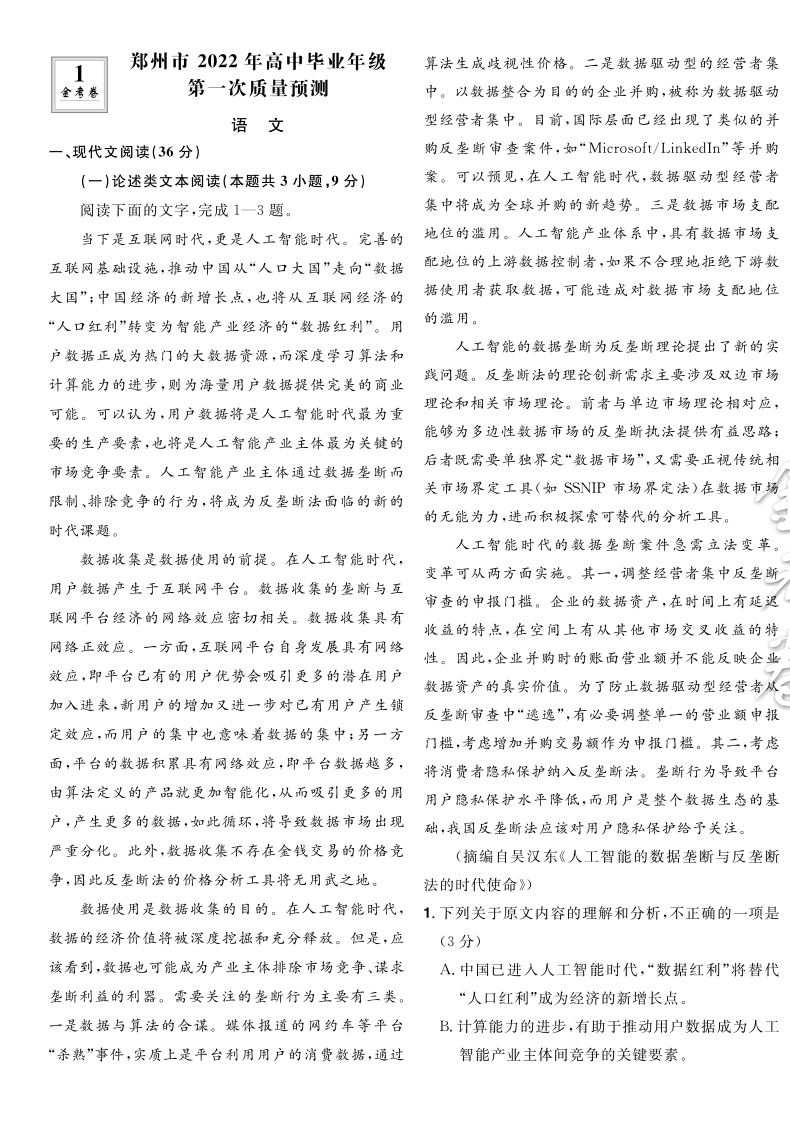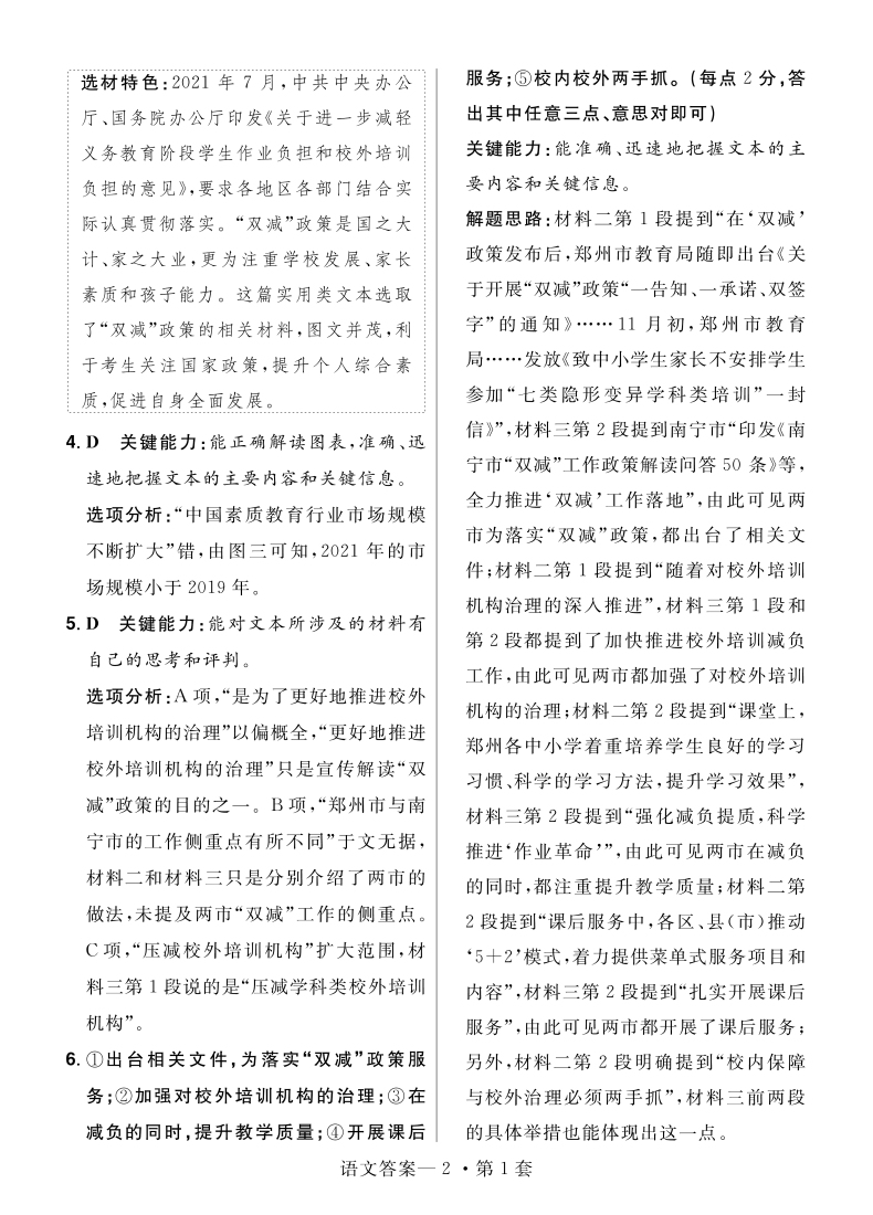 2022新高考版 金考卷特快专递第6期一模精选卷语文