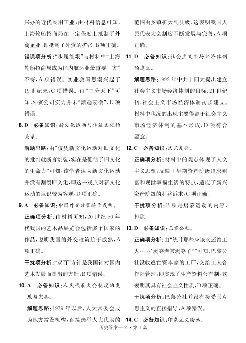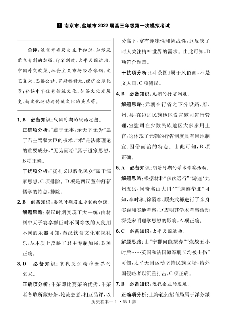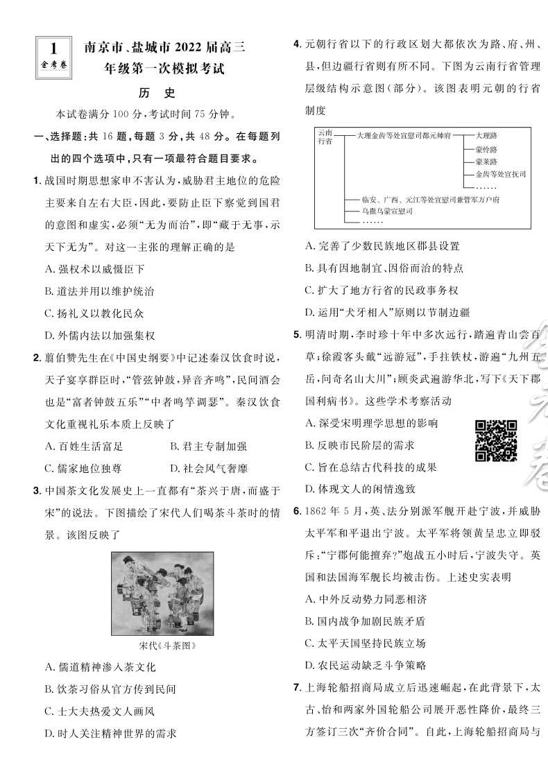2022新高考版 金考卷特快专递第6期一模精选卷历史