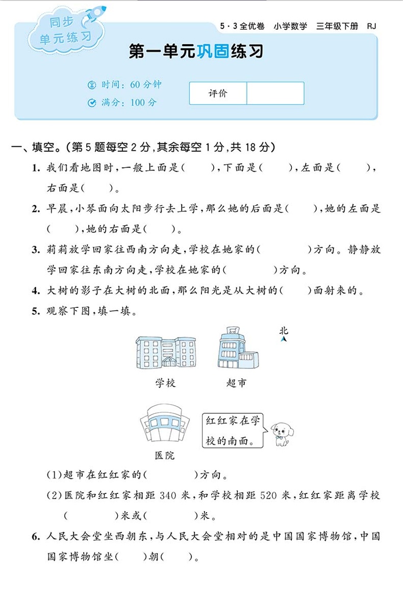首页> 小学教辅> 三年级> 数学> 2022春 5.3全优卷三年数学下册