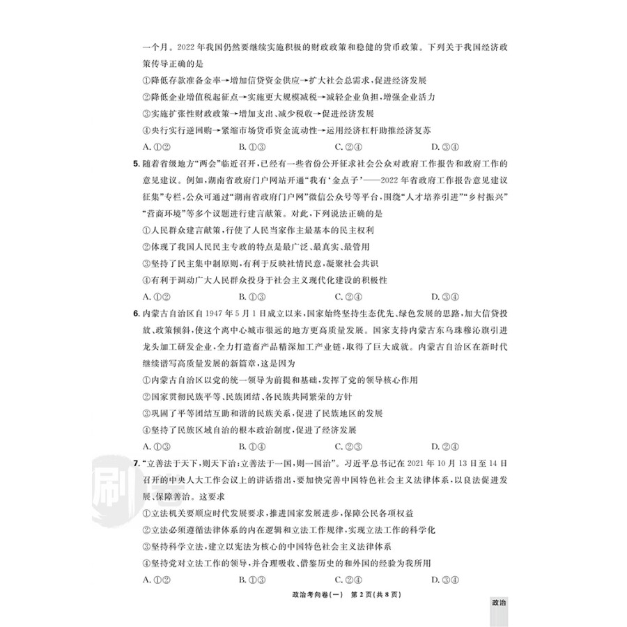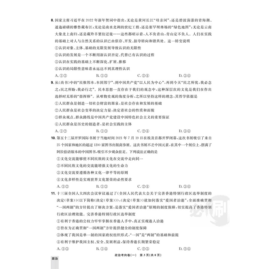2022版 高考必刷卷考向卷命题聚焦政治(辽宁专用)