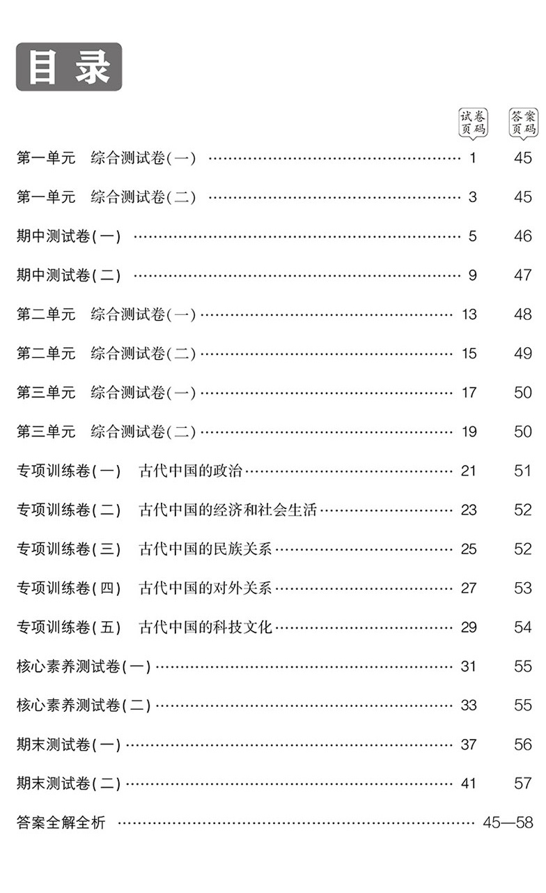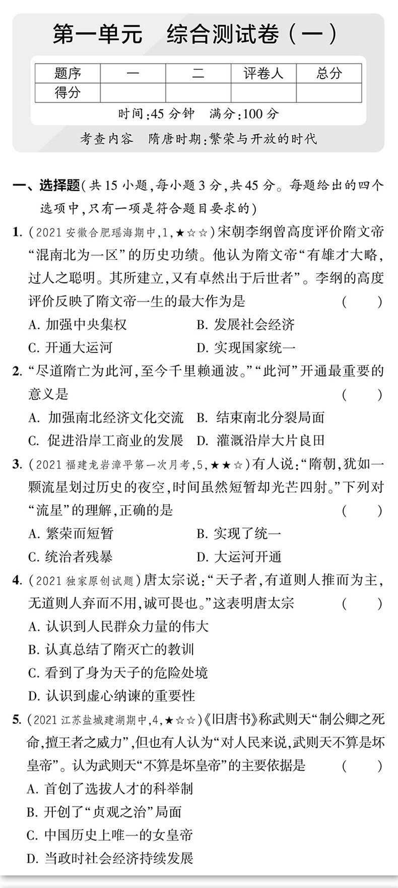 2022版五年中考三年模拟七年级下册试卷 历史 人教版