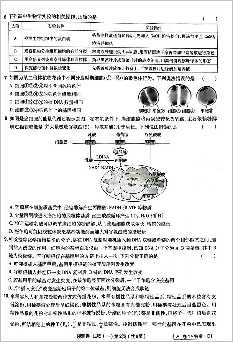 2022新版高考快递高考预测卷8套生物 辽宁专用