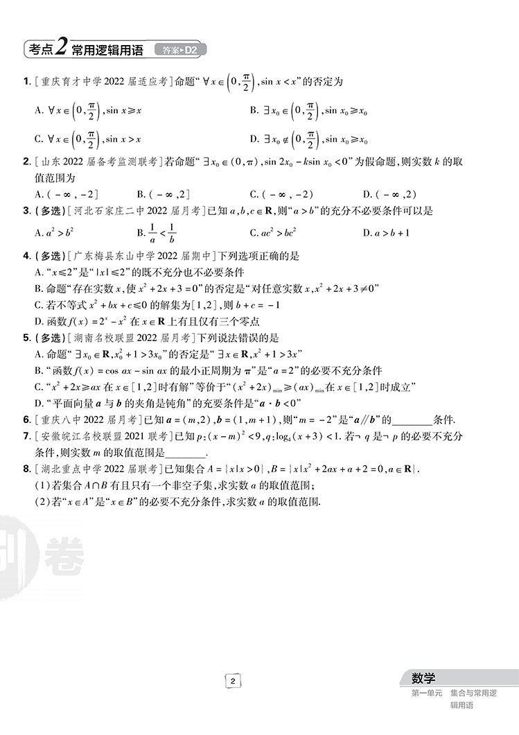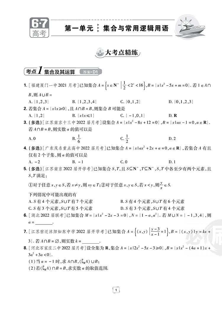 首页> 高中教辅> 高三年级> 数学> 2023版高考必刷卷单元提升卷数学